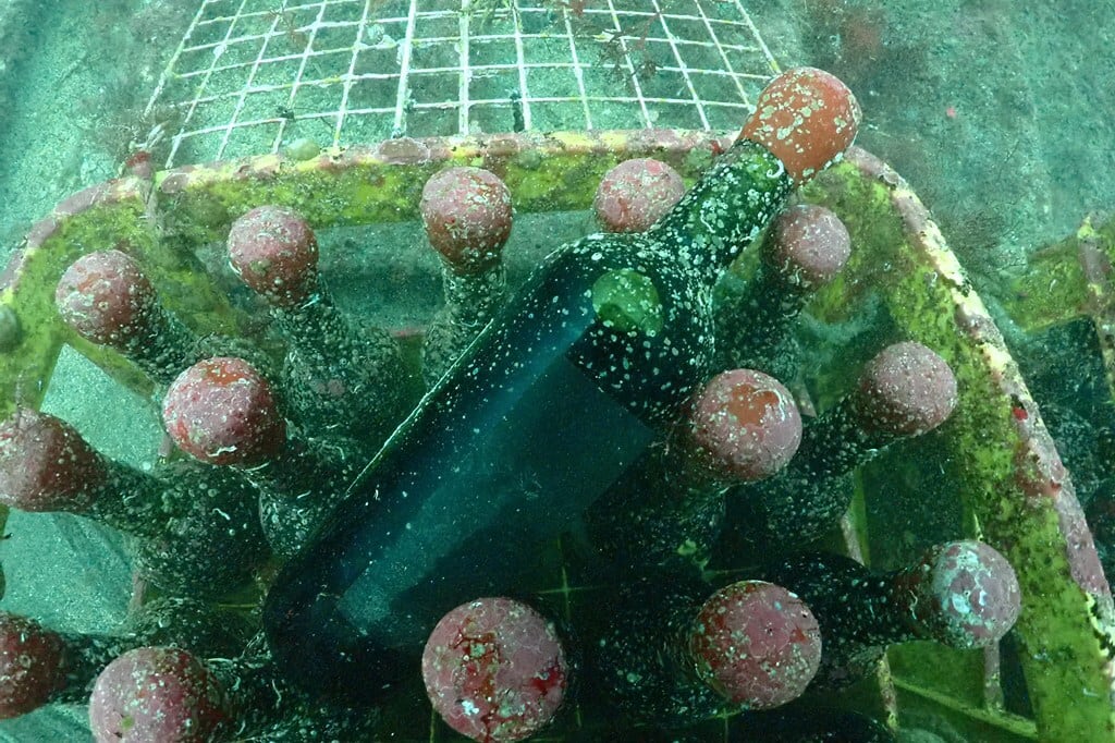 ・海底熟成の過程でボトル表面にはフジツボ類が付着しています。ケガにご注意下さい。