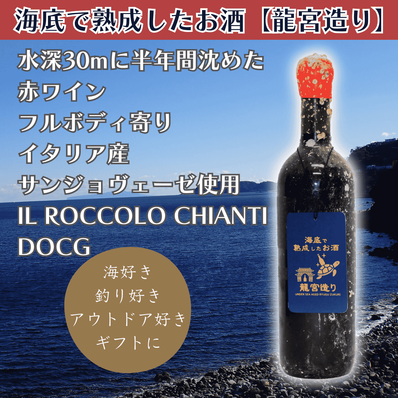 イタリア産サンジョヴェーゼ赤ワイン フルボディ寄り #11 IL ROCCOLO CHIANTI DOCG【海底で熟成したお酒 龍宮造り】