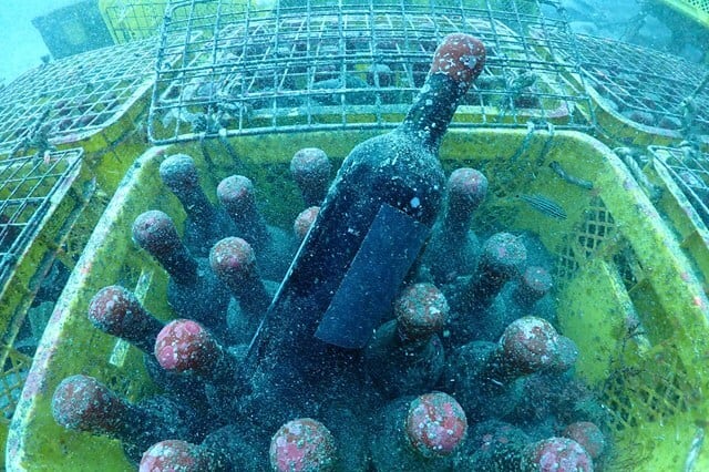 ・海底熟成の過程でボトル表面にはフジツボ類が付着しています。ケガにご注意下さい。